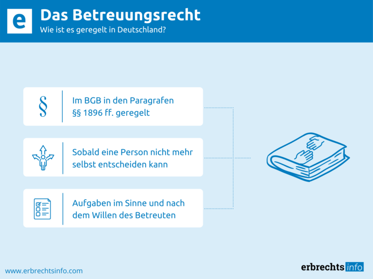 Das Betreuungsgesetz in Deutschland trat 1992 in Kraft und es ist ein Teilgebiet des Familienrechts, das im Bürgerlichen Gesetzbuch (BGB) in den §§ 1896 ff. geregelt ist. Das BGB ist somit auch das zentrale Gesetzeswerk für die gesetzliche Betreuung. Durch dieses Gesetz wurde zu diesem Zeitpunkt das gesamte Betreuungsrecht reformiert und hat dabei alte Rechtsmittel wie z. B. die Entmündigung und Vormundschaft für Volljährige ersetzt. Da jedoch eine Betreuung immer auch in die Grund- und Persönlichkeitsrechte der entsprechenden Personen eingreift, bedarf es bei der Anwendung des Betreuungsrechts besonderer Sorgfalt. Hierbei sollen dann auch immer alle Entscheidungen den Wünschen des Betreuten entsprechen und sie müssen auch, dem Verhältnismäßigkeitsprinzip unterliegen in einem Betreuungsverfahren. Hierbei ist ein Eingriff in die Grundrechte immer nur dann verhältnismäßig, wenn eine ausgewählte Methode sowohl geeignet als auch erforderlich und angemessen ist.